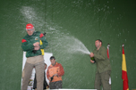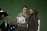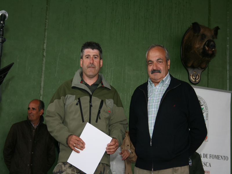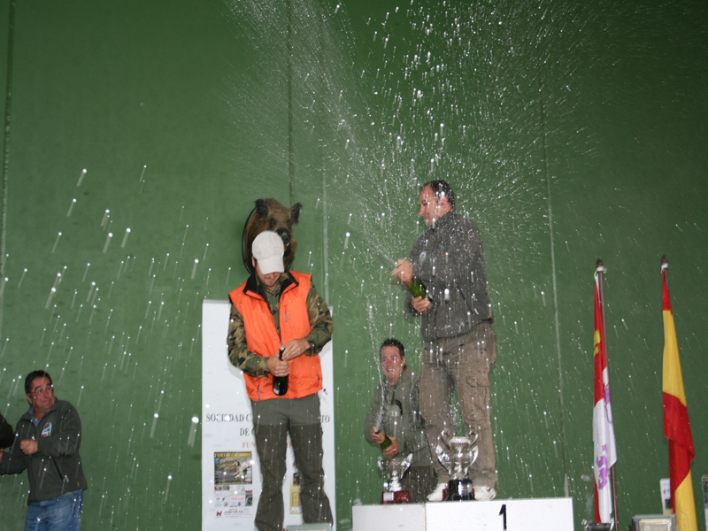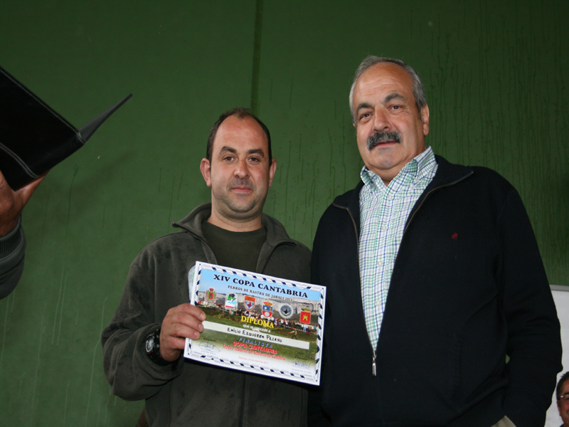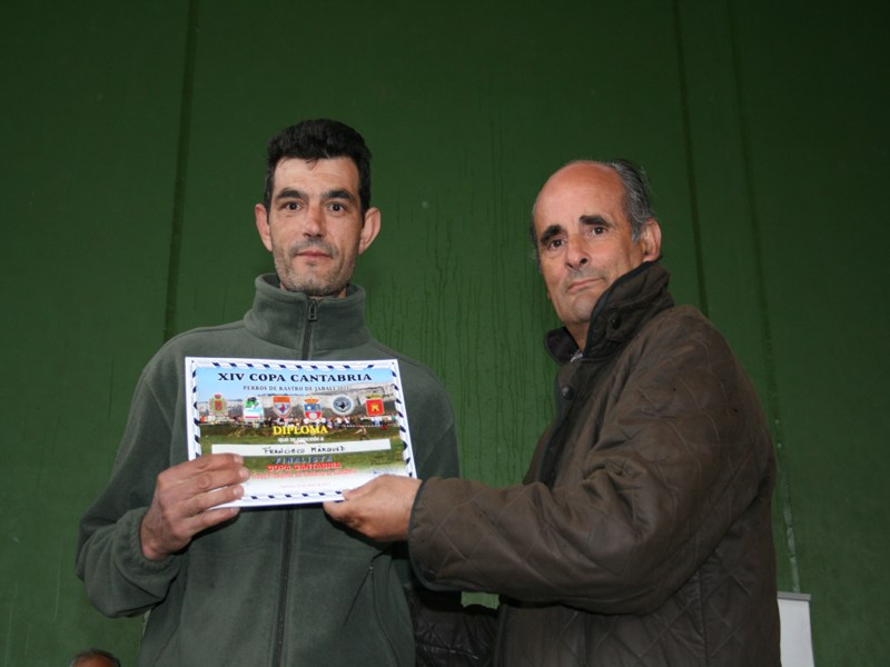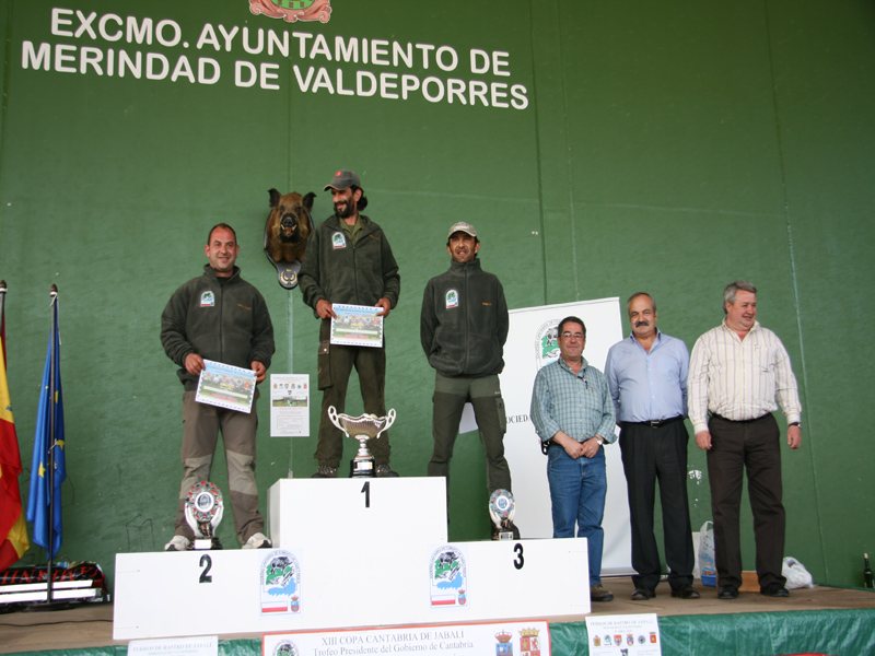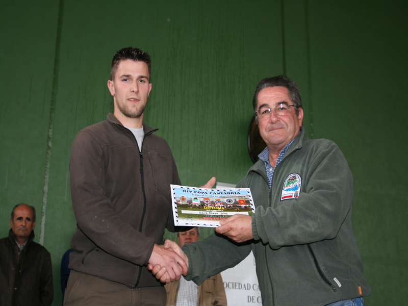 A las 18,00 horas se procedía a la entrega de premios en la que participaron los Alcaldes de la Merindad de Sotoscueva, Siete Juntas de Sotoscueva, Merindad de Valdeporres, Santelices y la Sociedad Cántabra de Fomento de Caza y Pesca, donde se entregaron trofeos, diplomas, los modernos localizadores GPS garmin y sus collares, polares, pantalones, pienso y obsequios y en la que no faltó el champán con el que desde el podium los tres primeros clasificados regaban al público.