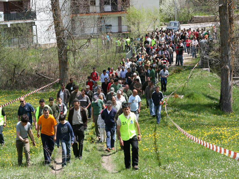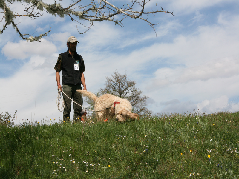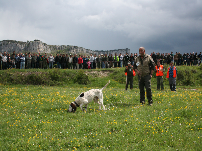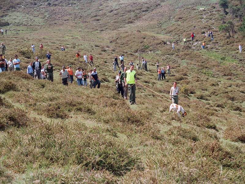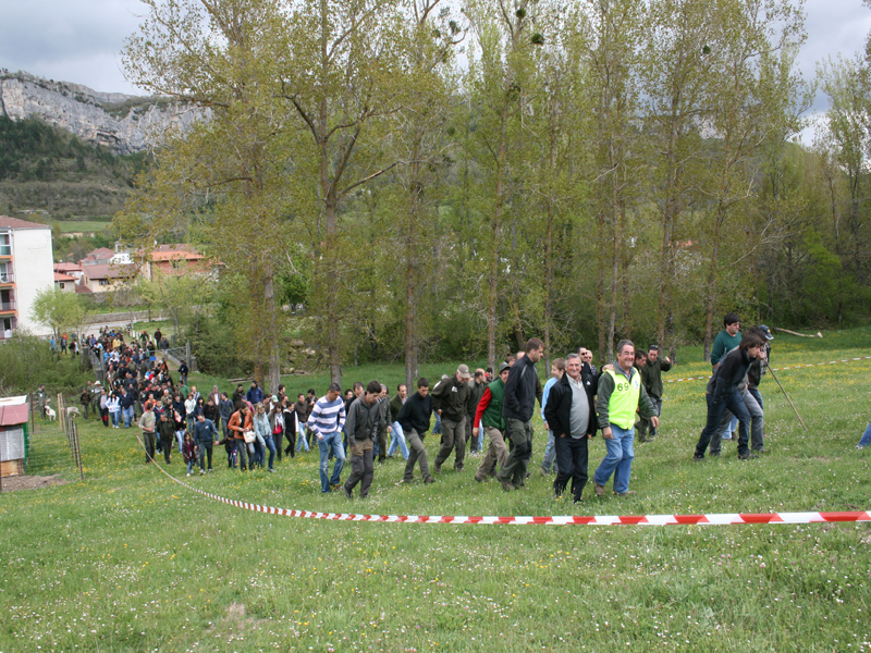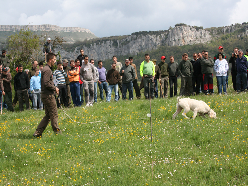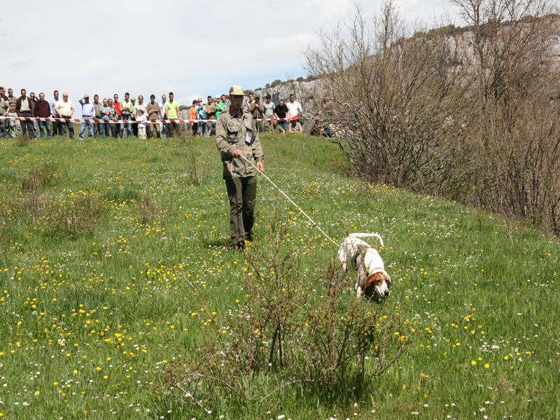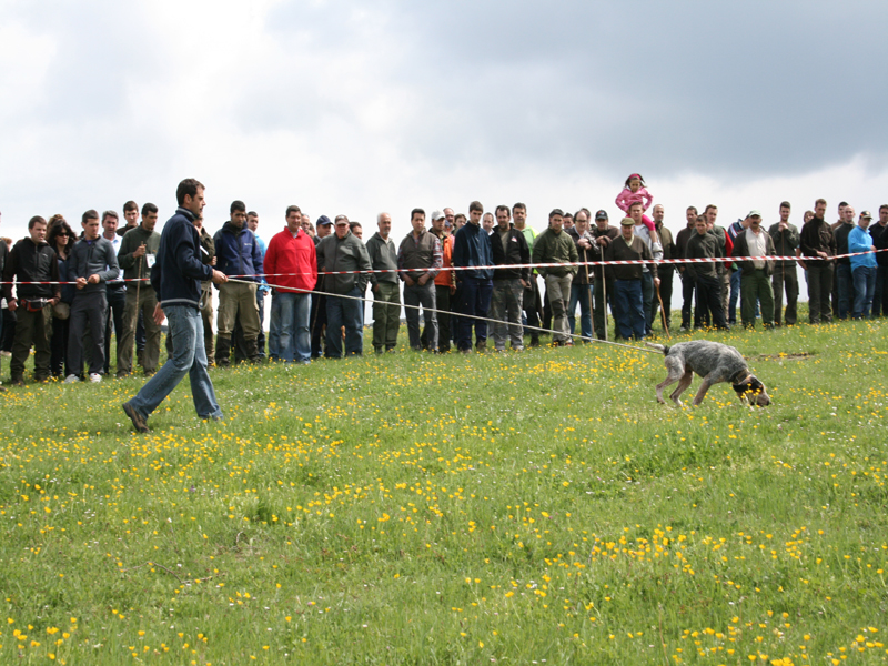 Por la mañana se organizaron tres campos de excelentes condiciones, por la vegetación, igualdad en el rastro y excelentes vistas para que el público pudiese disfrutar del trabajo completo de los perros. Estos terrenos disponen de mucho rastro y al clasificarse solamente seis perros por cada campo, hay varios perros que a pesar de hacerlo francamente bien no pasaron a la gran final. Juzgaban tres jueces por cada campo, eliminando la puntuación más alta y la más baja.