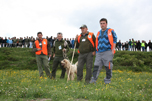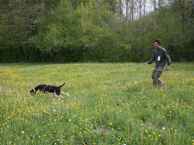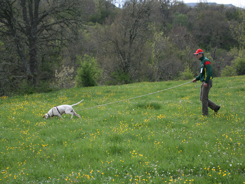 Sobre las catorce horas daba comienzo la gran final, en una finca con menos roce y rastro con más tiempo que en las pruebas selectivas, ya que estaban los mejores perros y había que comprobar la diferencia entre ellos. La organización había marcado previamente el campo, con la misma distancia para cada perro, con varillas intermedias y de comienzo y fin de cada prueba, y marcas verdaderas y falsas, para que los concursantes no pudieran identificar el rastro.