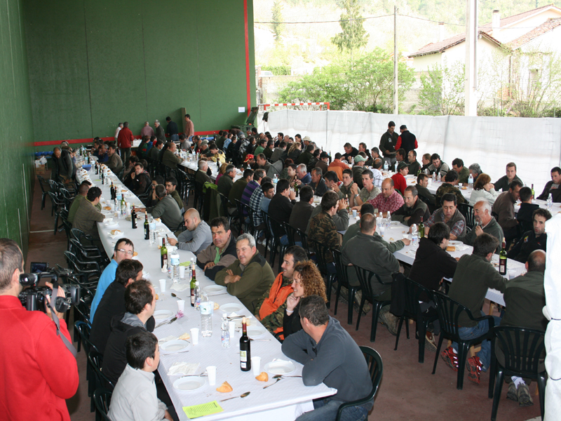 Acabada la prueba final, mientras se sumaban las puntuaciones de los jueces y se establecían las correspondientes clasificaciones, en el pabellón deportivo de Pedrosa, unas doscientas personas entre participantes, autoridades y público en general, degustaban las patatas con chorizo o el cabecero de lomo, todo ello organizado por cuarenta socios de Fomento, que de forma totalmente altruista, formaban la organización.