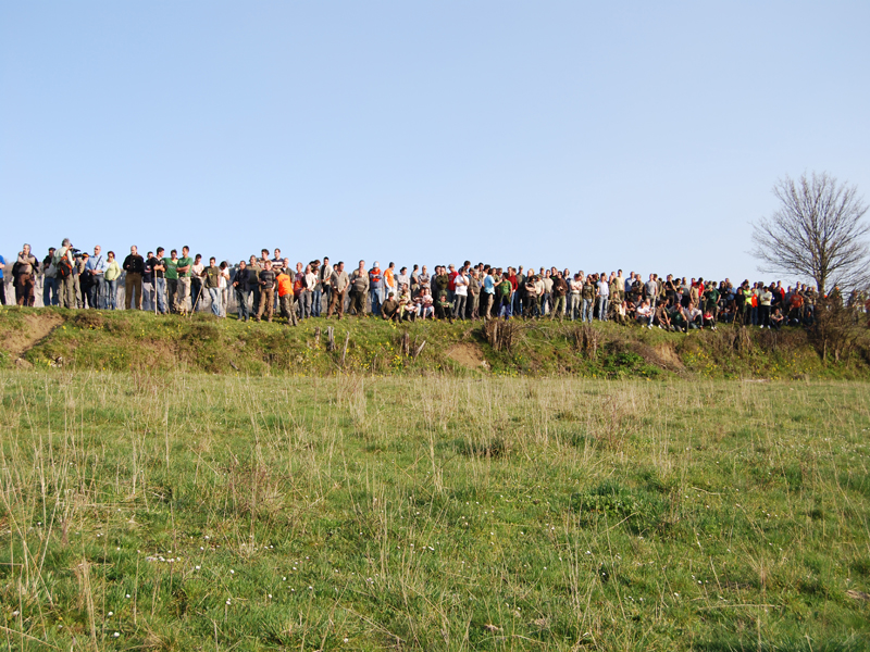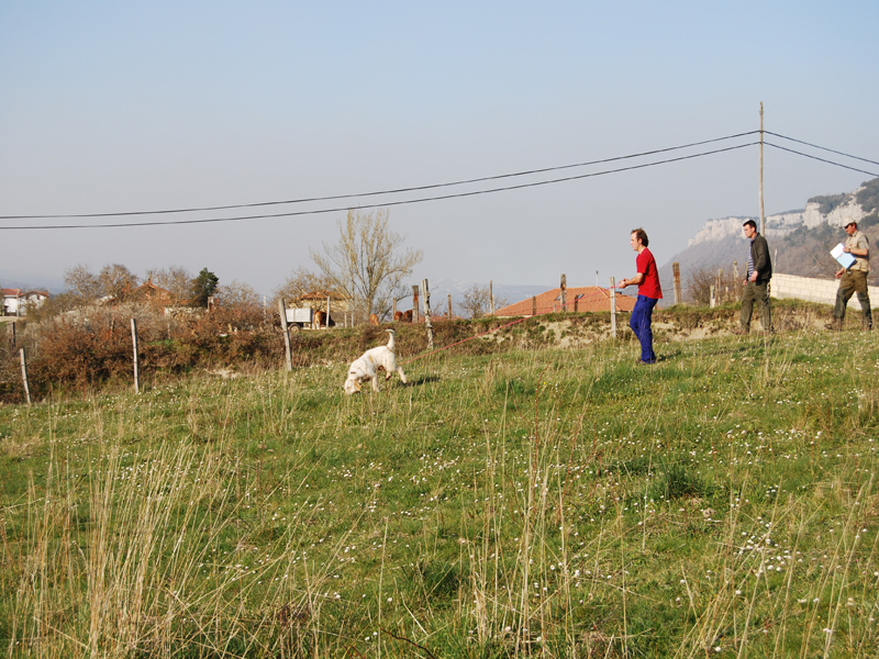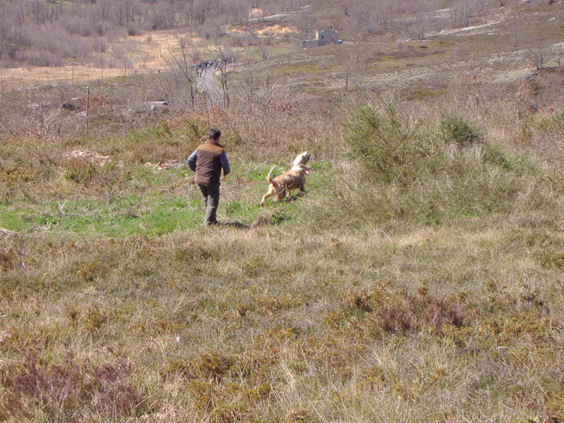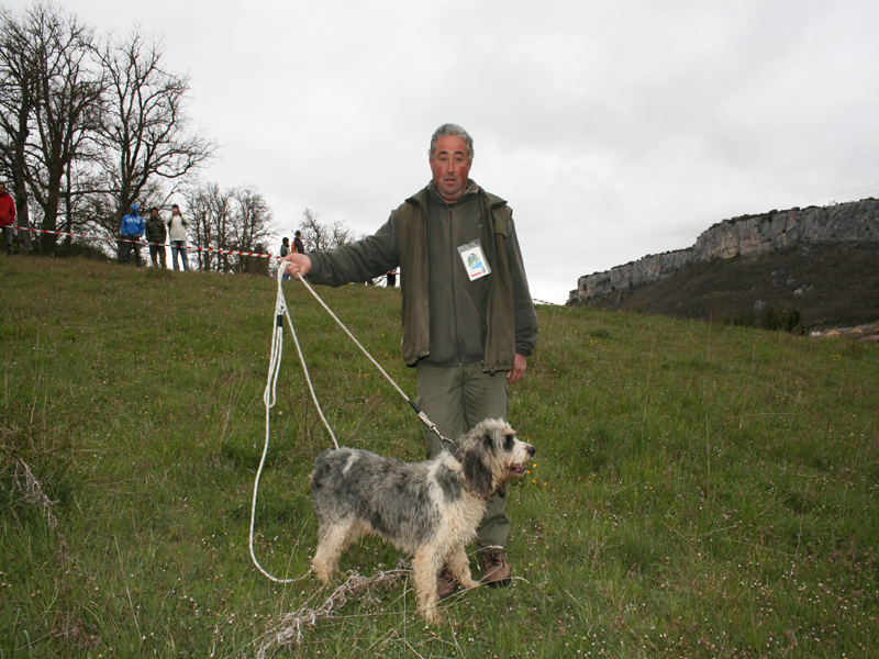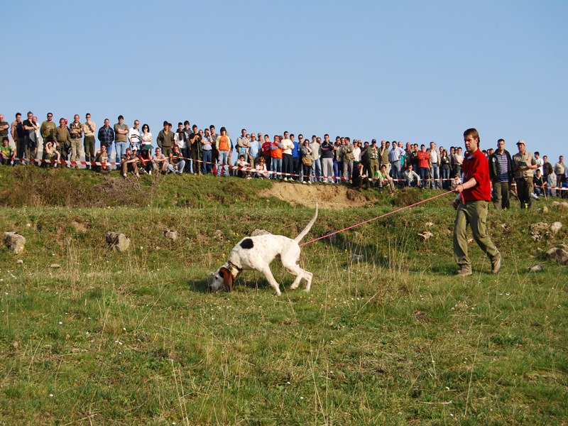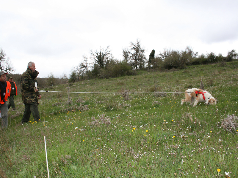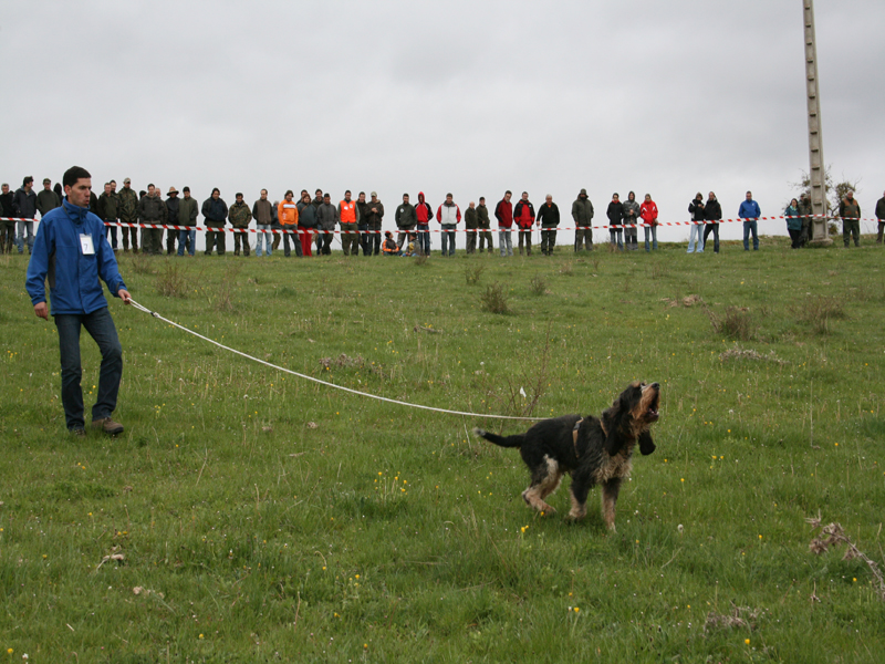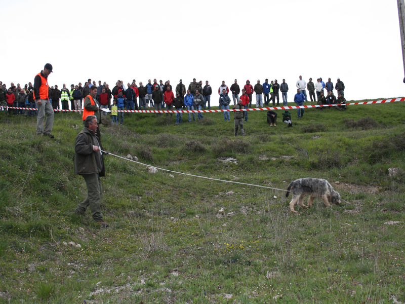 Sobre las trece horas daba comienzo la Gran final, en una finca con menos roce y más tiempo en el rastro que en las pruebas selectivas, ya que estaban los mejores perros y había que comprobar la diferencia entre ellos. La organización había marcado previamente el campo, con la misma distancia para cada perro, con varillas intermedias y de comienzo y fin de cada prueba, y marcas verdaderas y faldas, para que los concursantes no pudieran identificar el rastro.