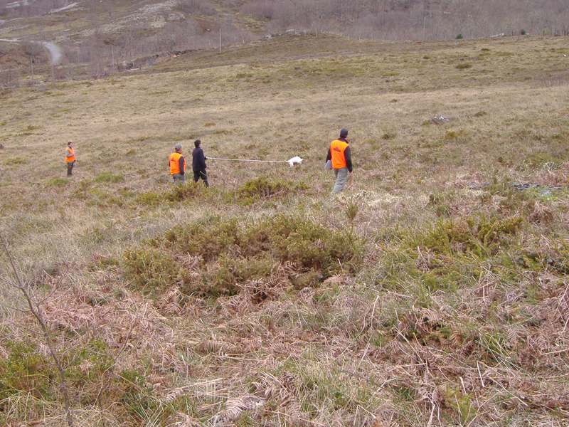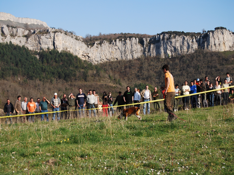 Por la mañana se organizaron tres campos, de excelentes condiciones, por su igualdad en el rastro y por las excelentes vistas para que el público pudiese disfrutar del trabajo completo de los perros. Juzgaban tres jueces por cada campo, eliminando la puntuación más alta y la más baja.