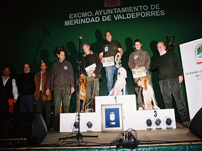 Hacia las cinco daban lugar las pruebas, fueron dos, que iban a decidir la clasificación. La primera consistió en cortar un rastro y la segunda el seguimiento del mismo. Dificultad por el tiempo pasado, el sol y un poco de viento aumentaban los problemas de los participantes. Finalmente la clasificación se establecía de la siguiente forma: