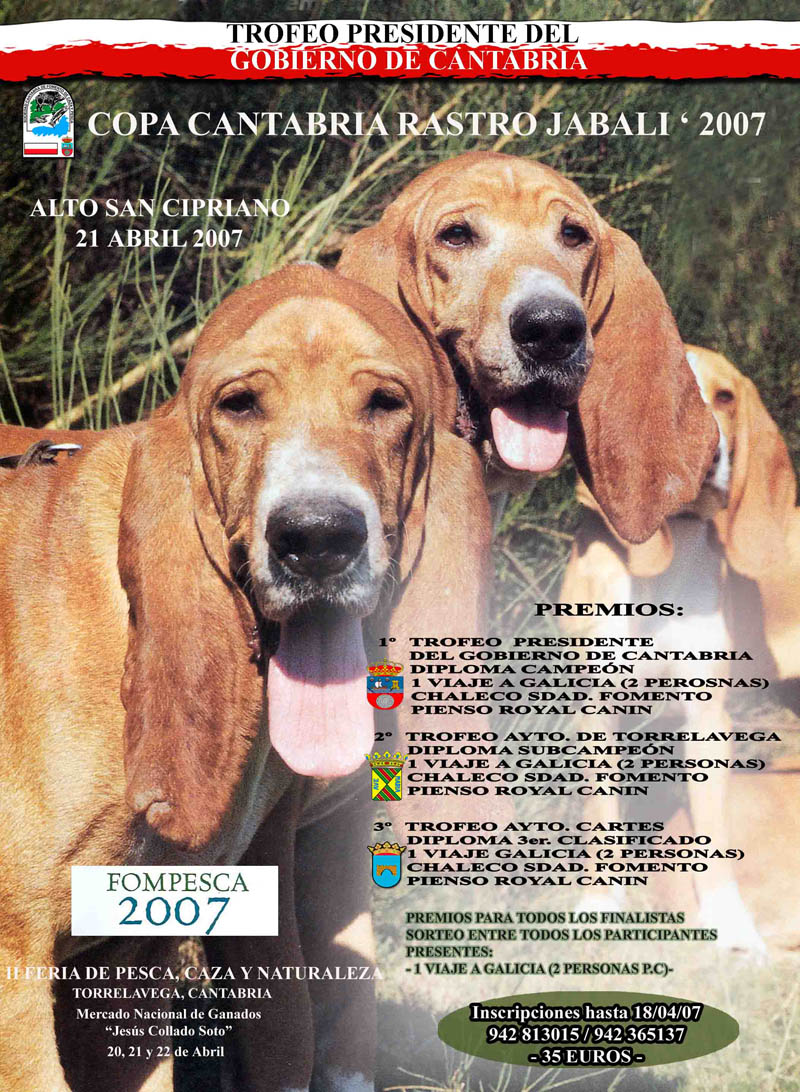 Debemos destacar la simpatía desatada ante el público por la montera Cristina Pérez, tanto por su juventud, por ser una chica y, sobre todo, por las muestras de saber lo que tenía entre manos y el dominio de la situación de la que dio muestras en todo momento.La comida de hermandad llevada a cabo en el restaurante del Mercado Nacional, a la que asistieron cerca de dos centenares de personas y en las que, como siempre, el tema cinegético en general y el de los perros en particular fue el imperante, daba paso a la entrega de trofeos, importantes en cuanto a sus donantes (Presidente de Cantabria, Ayto de Torrelavega y Ayto. de Cartes) así como los viajes, complementos, piensos, etc. que fueron entregados por la Directora de Montes, Concejala de Deportes del Excmo Ayto de Torrelavega y el Alcalde del Excmo. Ayuntamiento de Cartes entre otras autoridades, todo ello en el extraordinario marco de la feria Fompesca 2007.